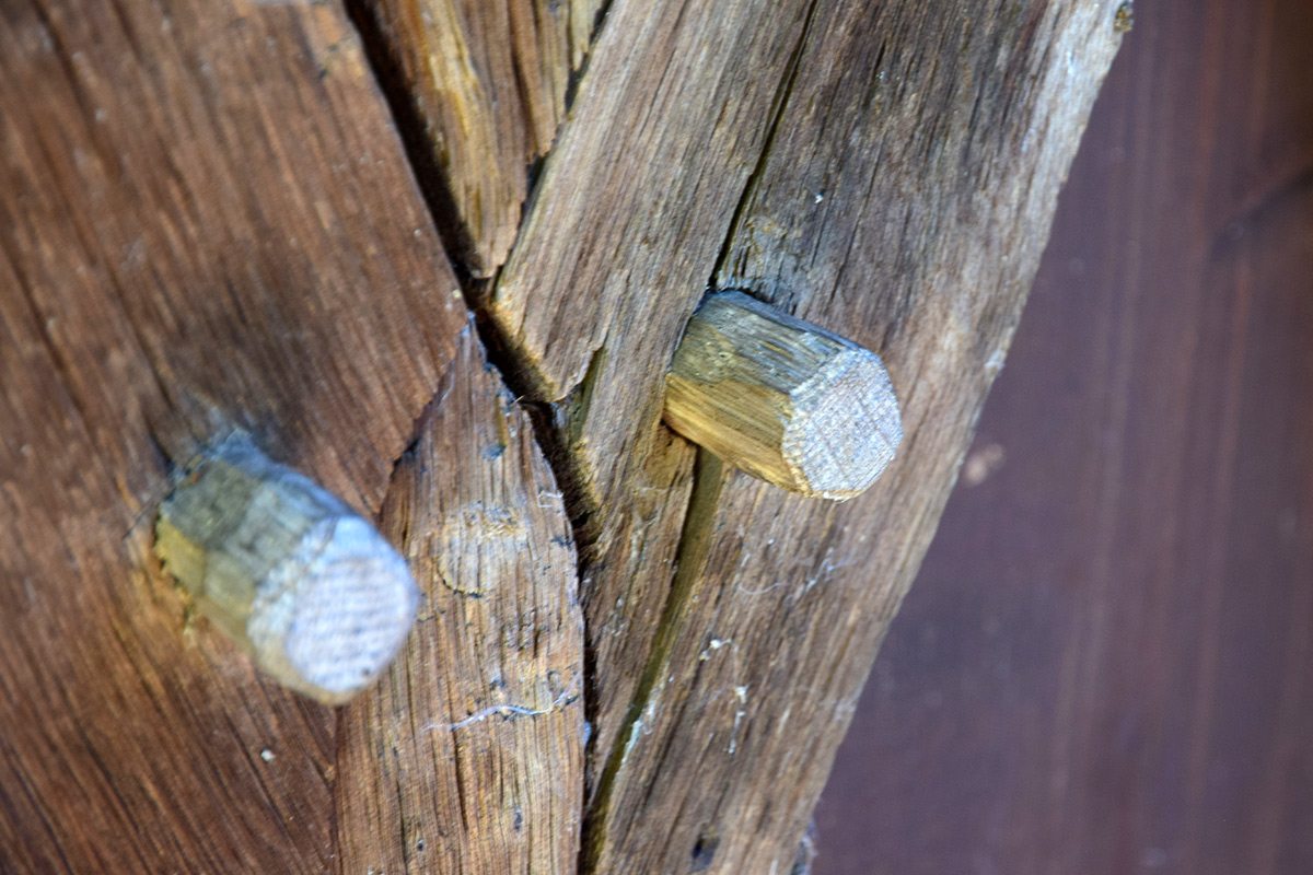 - celý z dreva, postavený bez použitia kovových prvkov