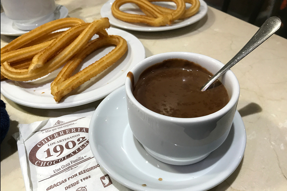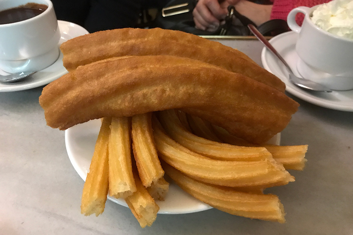Ak máte radi sladké, tak v Madride si pochutnáte na tradičných churros! Sladké vyprážané tyčinky (akoby langošové) podávajú vo viacerých vychýrených čokoládovniach, ale aj v stánkoch na ulici. My sme sa vybrali porovnať 2 tradičné čokoládovne San Gines (1894) aj 1902. 😉