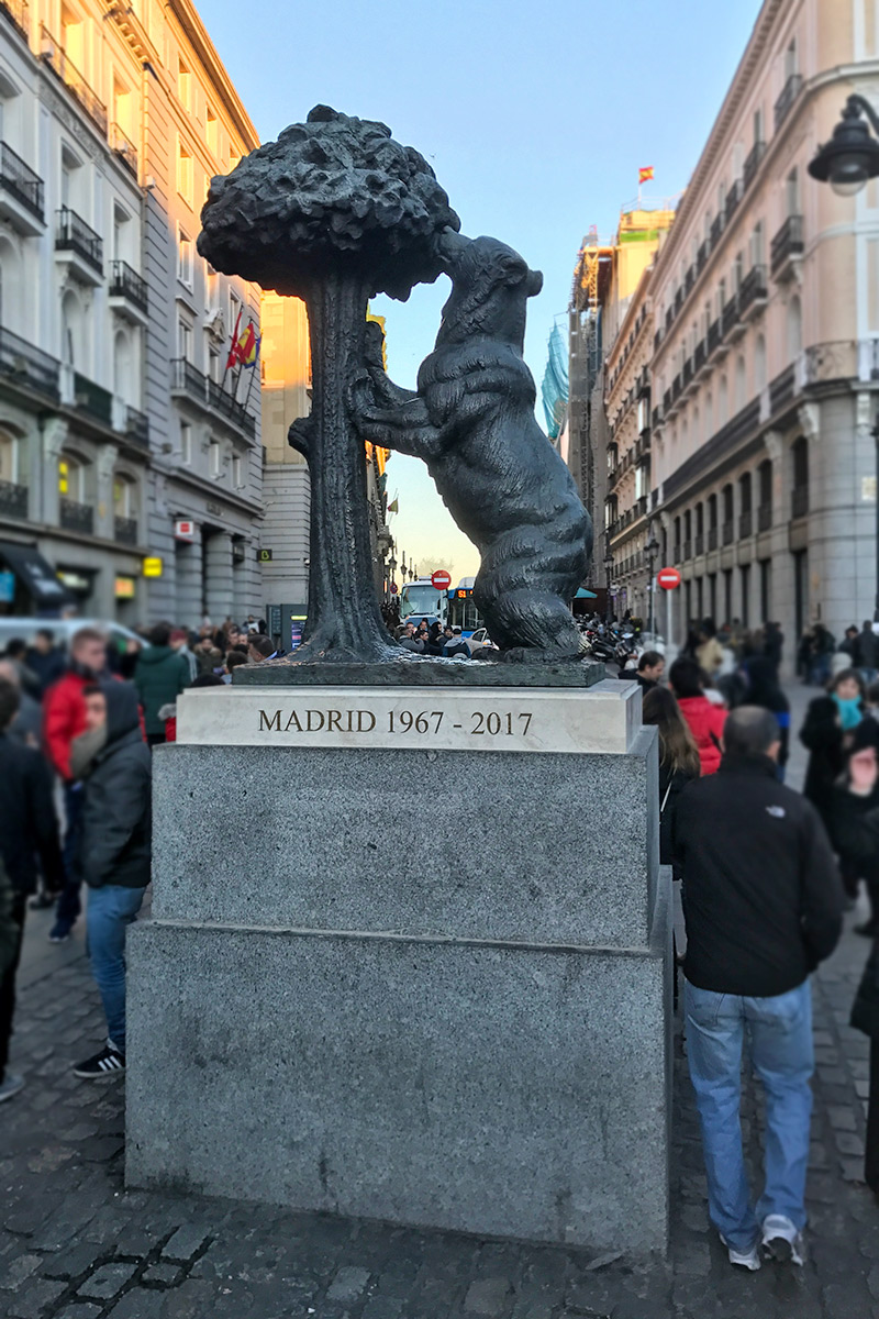 Nech sa vyberiete kamkoľvek, jedno z najfrekventovanejších námestí v centre Madridu – Puerta del Sol bude pravdepodobne váš orientačný bod a prestup na metre. Okrem zaujímavých budov, reštaurácii a obchodov tu nájdete aj sochu medveďa so stromom, ktorá sa nachádza v erbe mesta Madrid. Pred Vianocami tu bolo neskutočné kvantum ľudí 😉