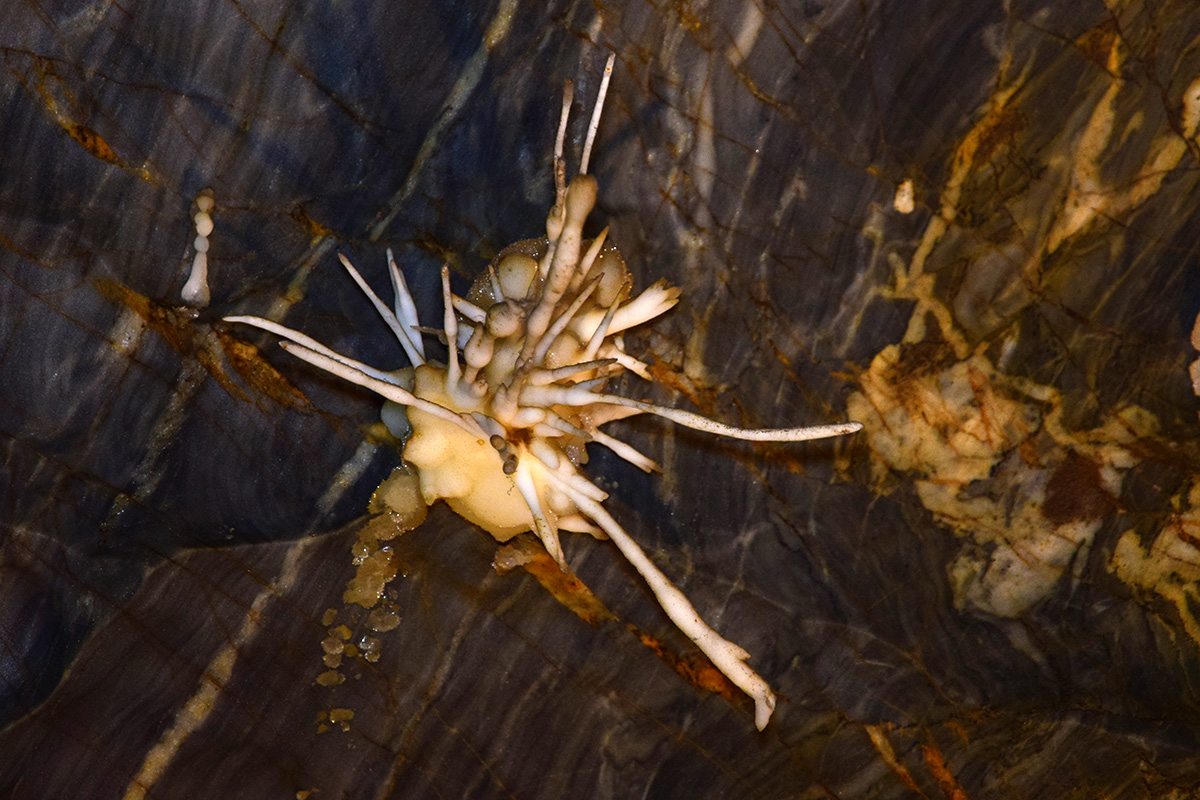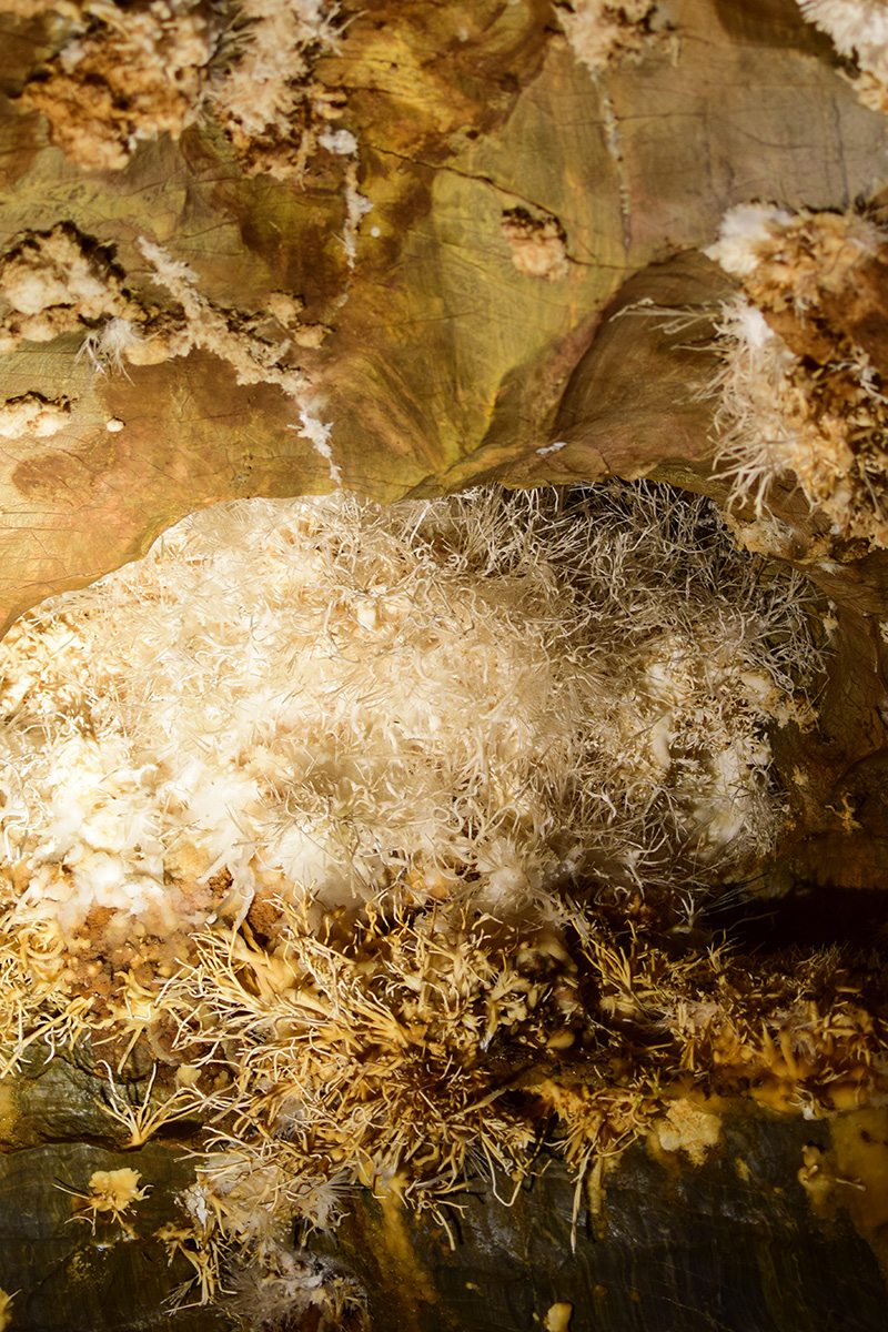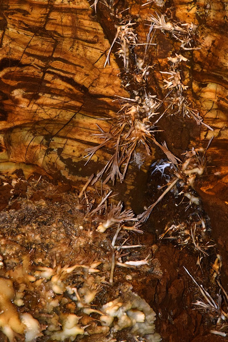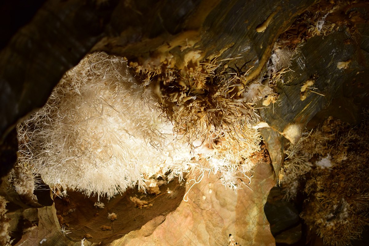 Okolo 230 metrov dlhú trasu sprístupnenú pre verejnosť a hneď niekoľko generácií aragonitu. Tvoria ho vodné roztoky s vysokým obsahom železa, horčíka a mangánu. Tie najstaršie su do biela zafarbené obličkovité útvary staré 120 až 138 tisíc rokov. Najzaujímavejšia a najnetradičnejšia je druhá generácia aragonitu, ktorá formuje dlhé ilhlice – trsy pripomínajúce kvety, alebo trávu. Odhaduje sa im vek približne 14 tisíc rokov. Najmladšia generácia zatiaľ tvorí len pár milimetrové špirálovité útvary a vejáriky.