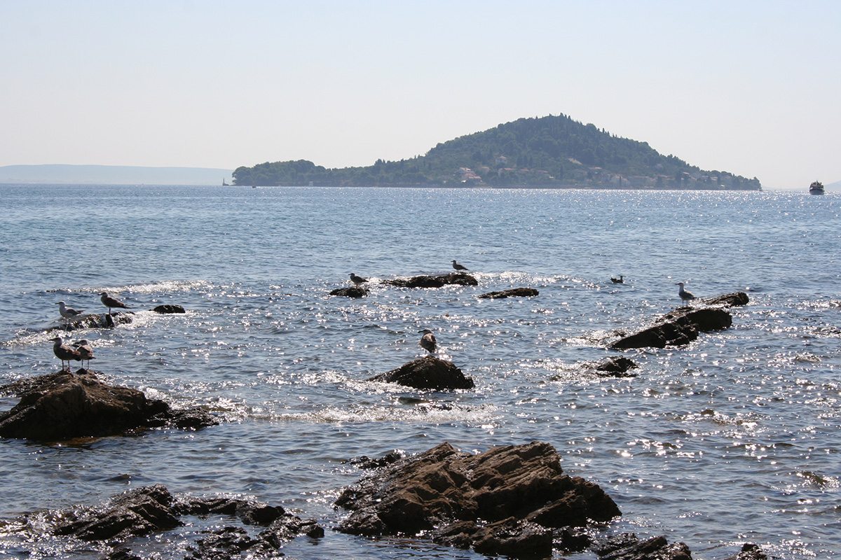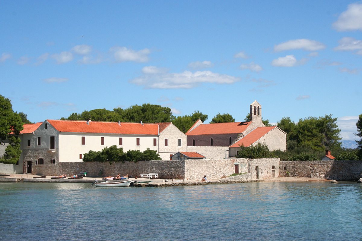 Naj plážou pre nás s ohľadom na naše detské osadenstvo bola jediná pláž s modrou vlajkou na ostrove – pláž Jaz (mimochodom väčšina pláži v propagačných materiáloch má svoje meno, ale nie všetky sú týmto menom aj označené) v Preku. Táto sa nám páčila najviac a strávili sme na nej posledné dva dni. Jej hlavnou atrakciou je malý ostrovček s františkánskym kláštorom. Na ostrov sa dá dostať priamo z pláže upraveným „morským“ chodníkom, ktorým tí vyšší (ak sa im nechce plávať) „prekráčajú „. Nižší a tí, ktorí chcú mať istotu suchej plážovej batožiny, sa môžu odviezť loďkou, ktorá premáva z pláže na ostrov. Kláštor je pre verejnosť neprístupný. Kláštorný komplex s jeho 3 stálymi obyvateľmi, pokrýva väčšinu ostrova, no napriek tomu sa dá po ostrove prejsť po vyznačenom chodníku po obvode. Prechádzku určite odporúčam, pretože v tieni vysokých borovíc si môžete vychutnať krásny výhľad na neďaleký Zadar.