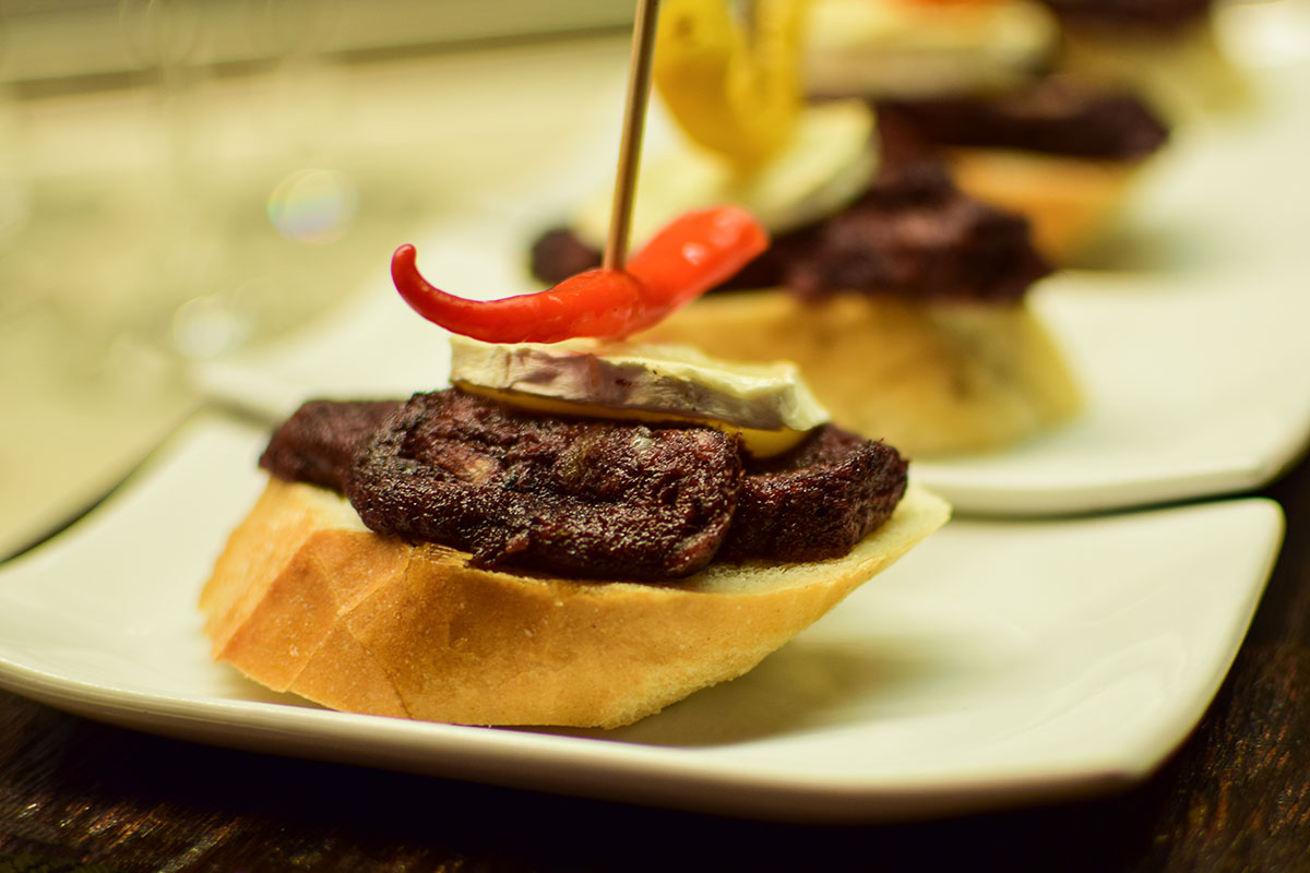 Tapa: Pečená krvavnička so zapekaným kozím syrom